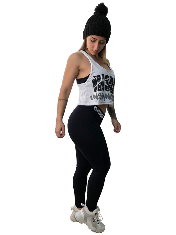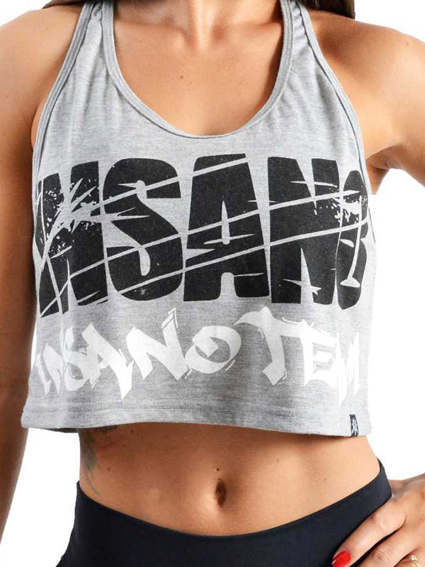 軽くて着心地の良い生地を使用した、どんなボトムスにも合う、とてもキュートなクロップ レーサーバック タンク。Insano Destroyer プリントが特徴です。