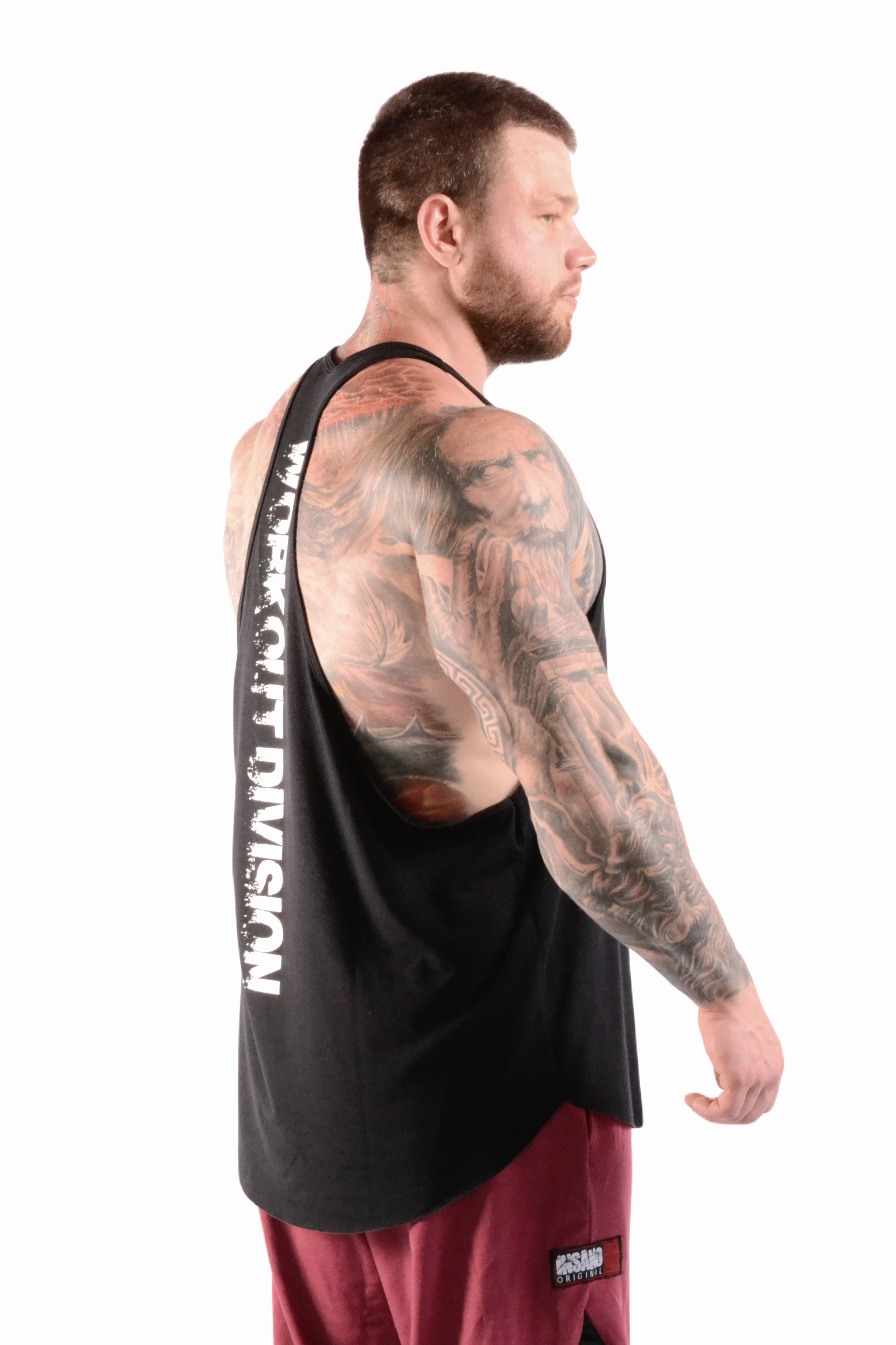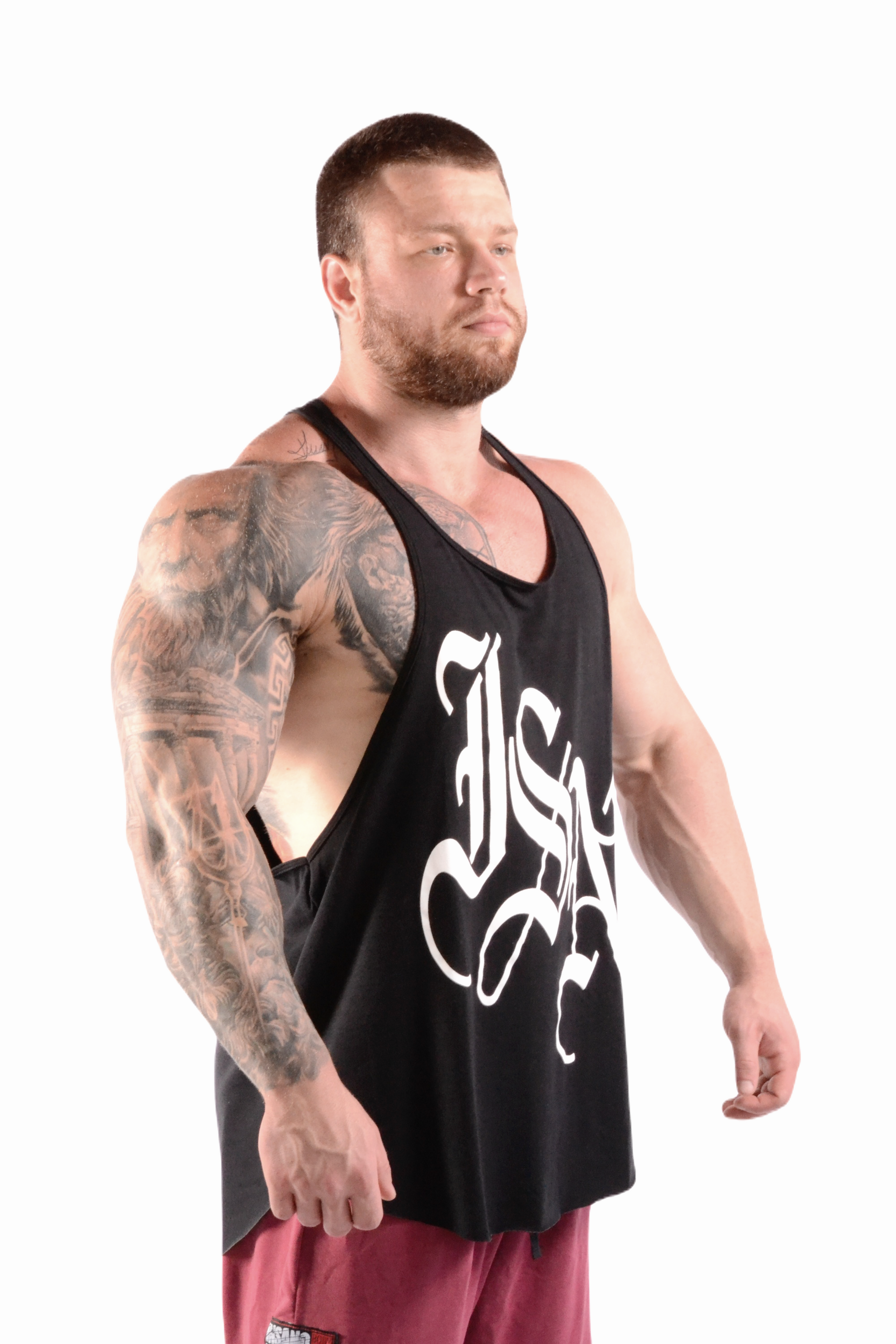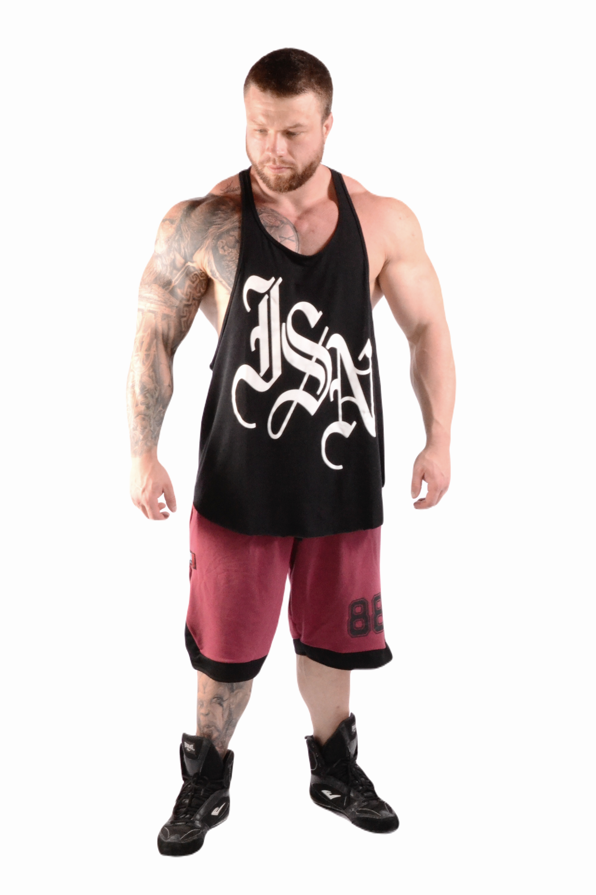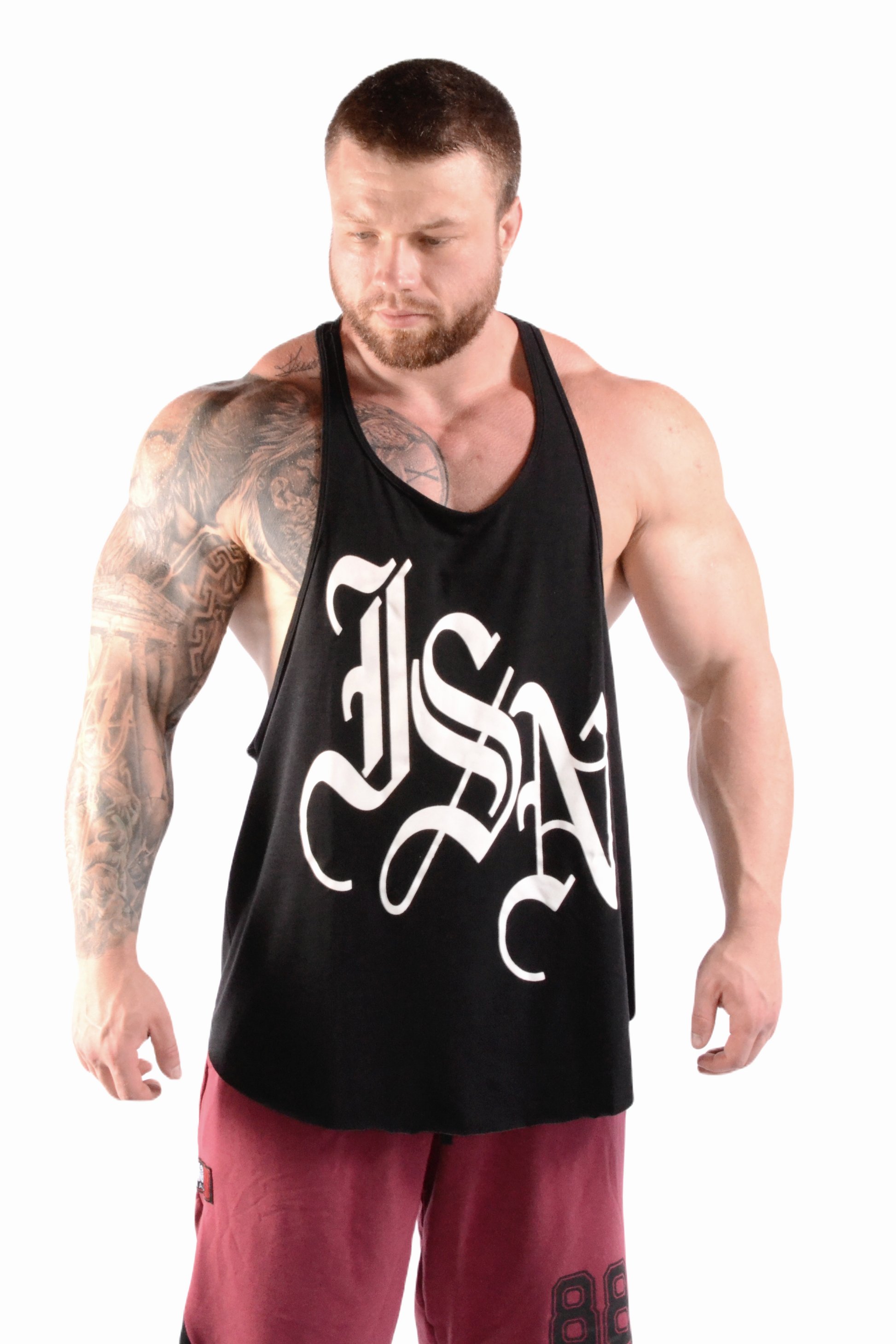 This tank has dropped armholes that enhances all your muscles from your upper body, specially your lats. It has curved hem and a loose fit. Made in a very light, stretchy kind of fabric, this tank is super comfortable and excellent for high performance workouts. Feats ISN (which stands for INSANO) print on front.