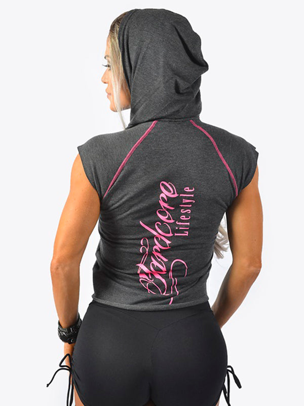 This is the most comfortable hooded tank you will ever wear in your life! Made in a stretchy, light type of fabric, this tank matches with any bottom you want, wherever you go. It has a cap sleeve that make your delts look bigger! Feats a laser cutted curved hem and a pink silk screen print. Whether day or night, sneakers or heels. Comfort, high quality and style that only INSANO has!