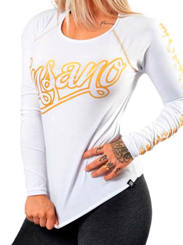 This super cute long sleeve it's laser cutted and has a raglan style. Feats INSANO Curl print in Gold color. Made in a very stretchy and light type of fabric, it is super comfortable and it allows you to do any kind of movement. It's fabric is also anti-odor. You can wear it at the gym or casual.