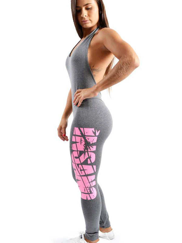 Open Back Full Lenght Bodysuit Pink Print