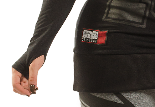 This strappy long sleeve hoodie is so unique! You can wear it as a dress or with any type of bottom: leggings, denim, shorts, skirt.. It has a thumb hole that makes it even more comfortable to wear. Its strappy plunge gives an special look to this hoodie.